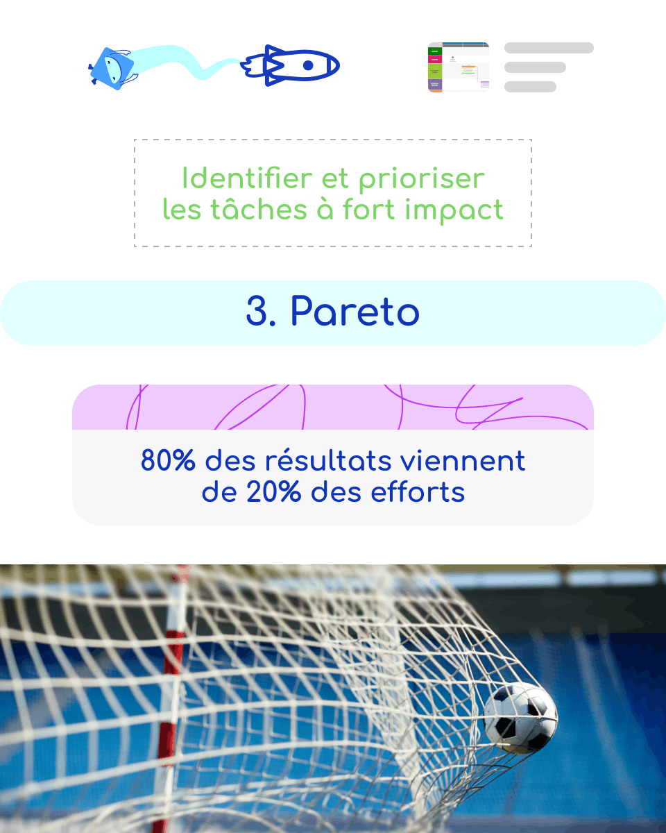 | Pareto (80/20) | 80% des résultats viennent de 20% des efforts | Identifier et prioriser les tâches à fort impact | Lors de la planification hebdomadaire |
